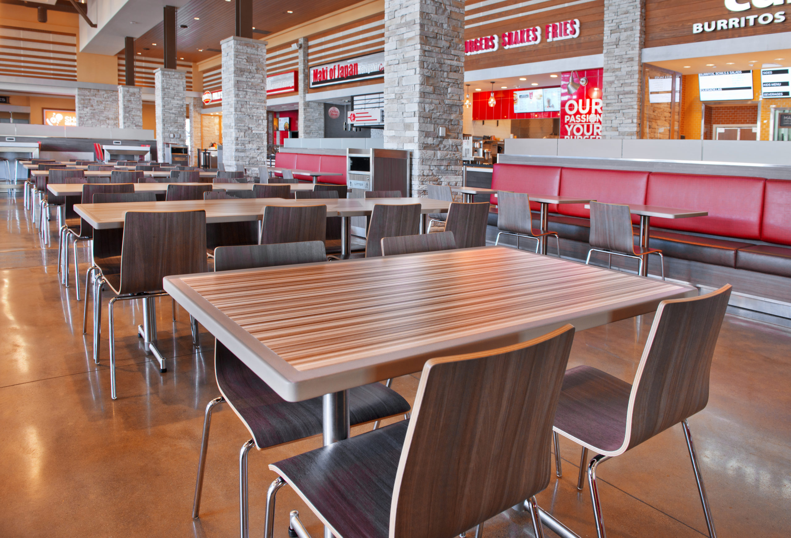 Molded plywood seat /back with laminate face – standard Wilsonart or Formica laminates apply. Heavy-duty steel frame with chrome finish. Available with purse/backpack cut out as shown on image. Must specify on the purchase order.